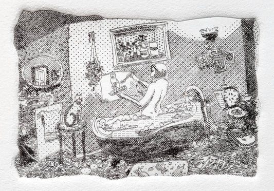 Watercolor Bath - Dry Point Print - Shrinky Dinky Print - Hand Printed with Archival Ink