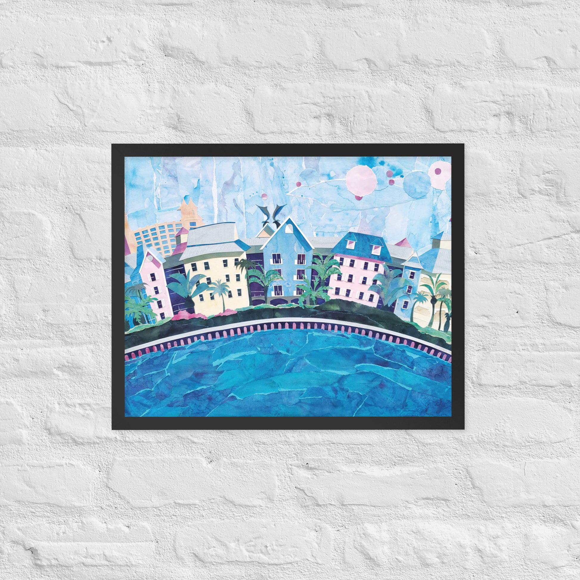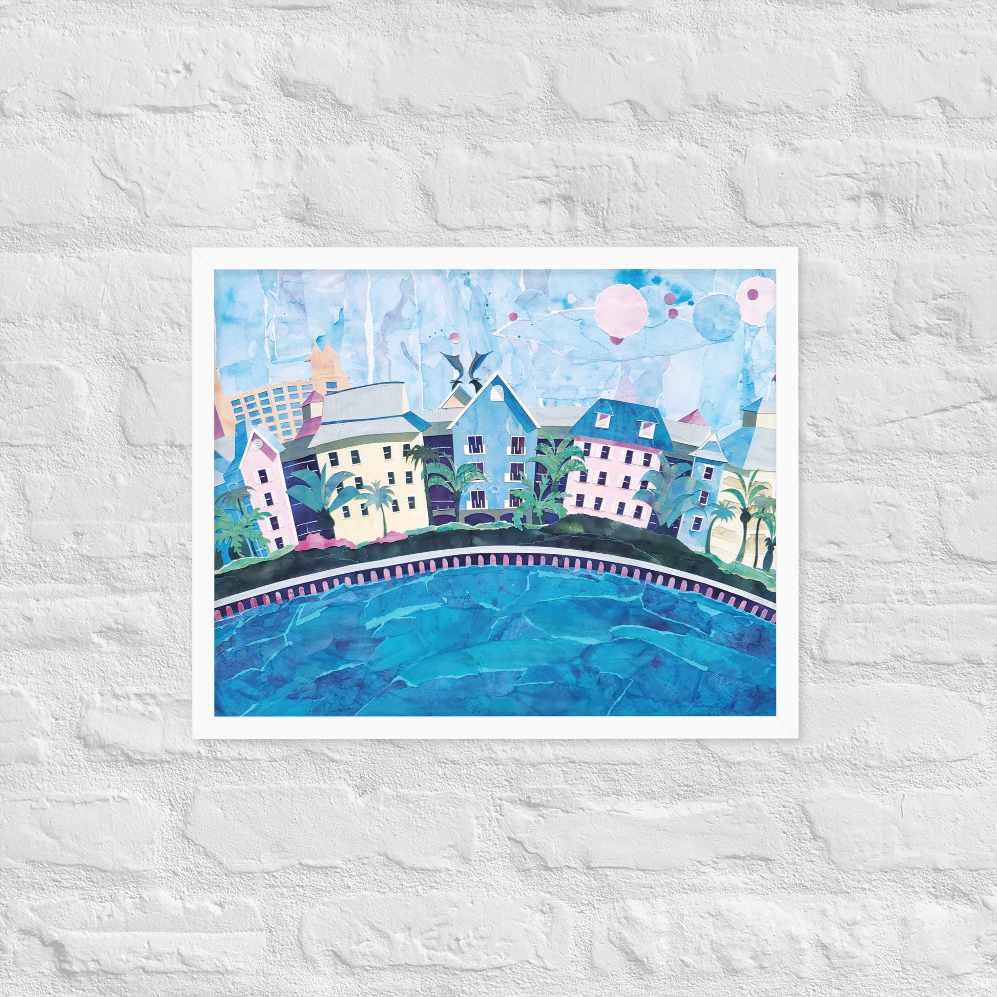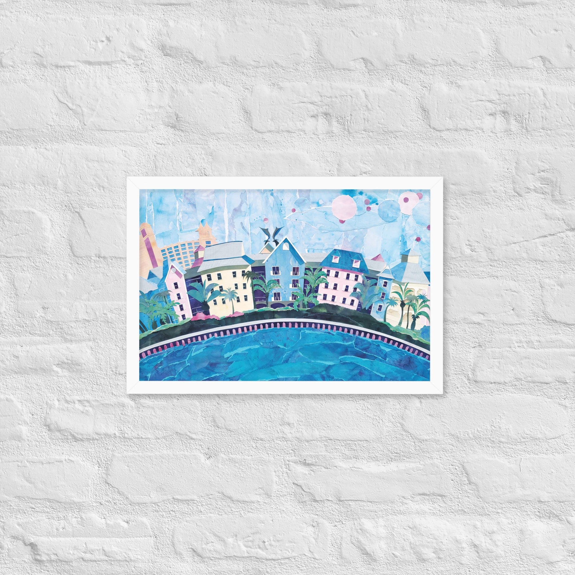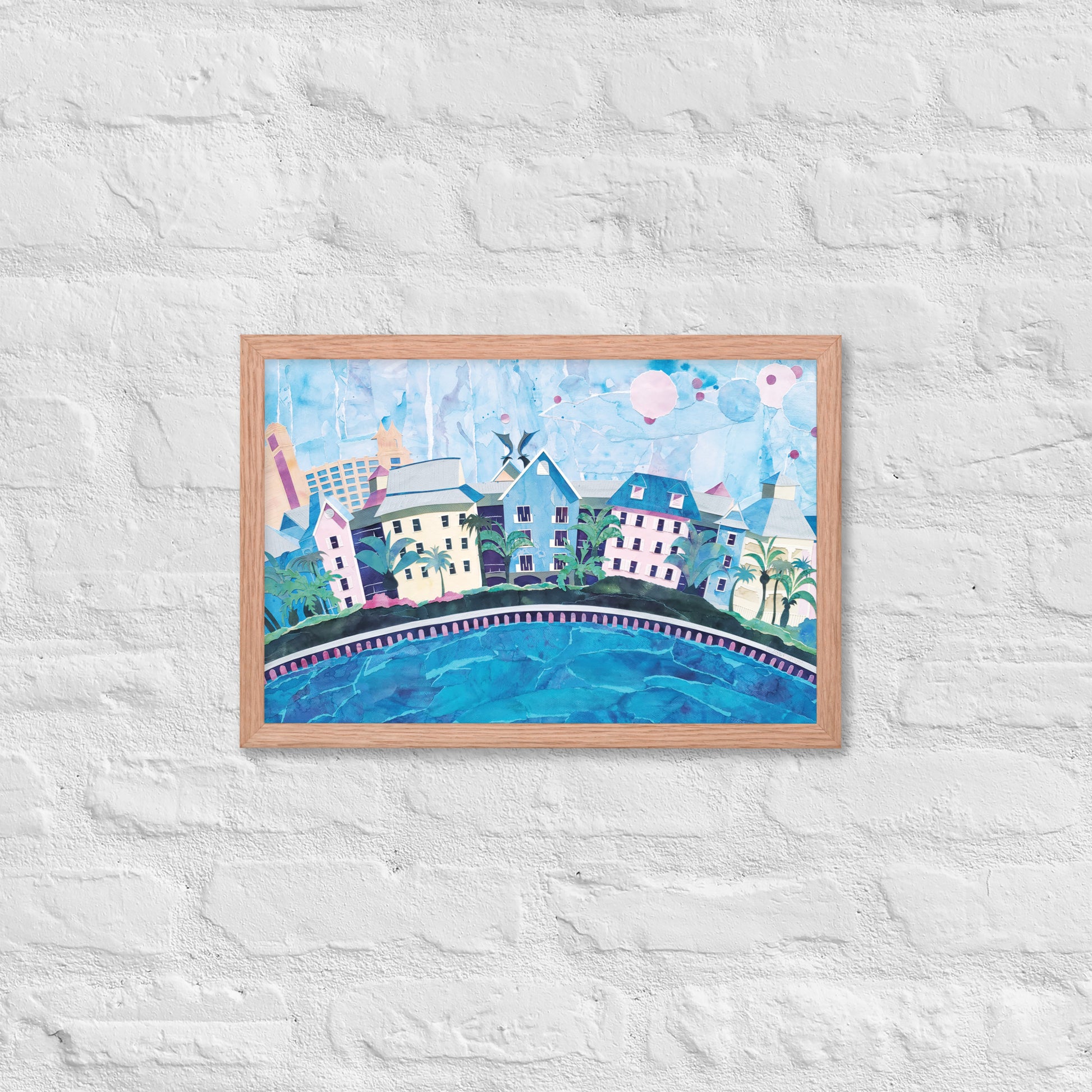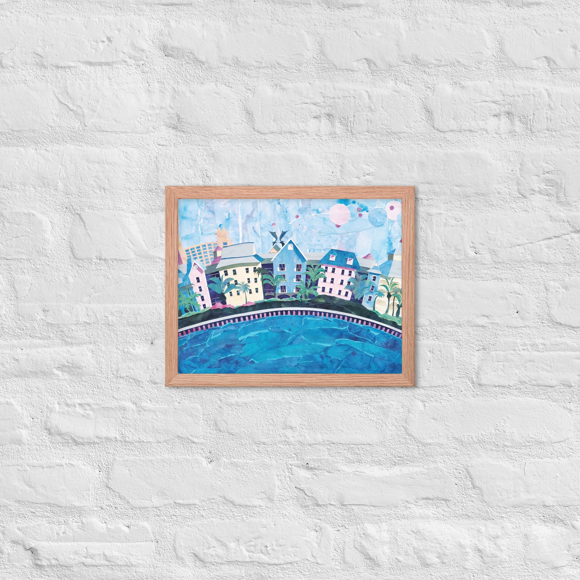 Nassau, Bahamas - Collage - Framed poster - Painted Paper Collage Print - Tropical Landscape