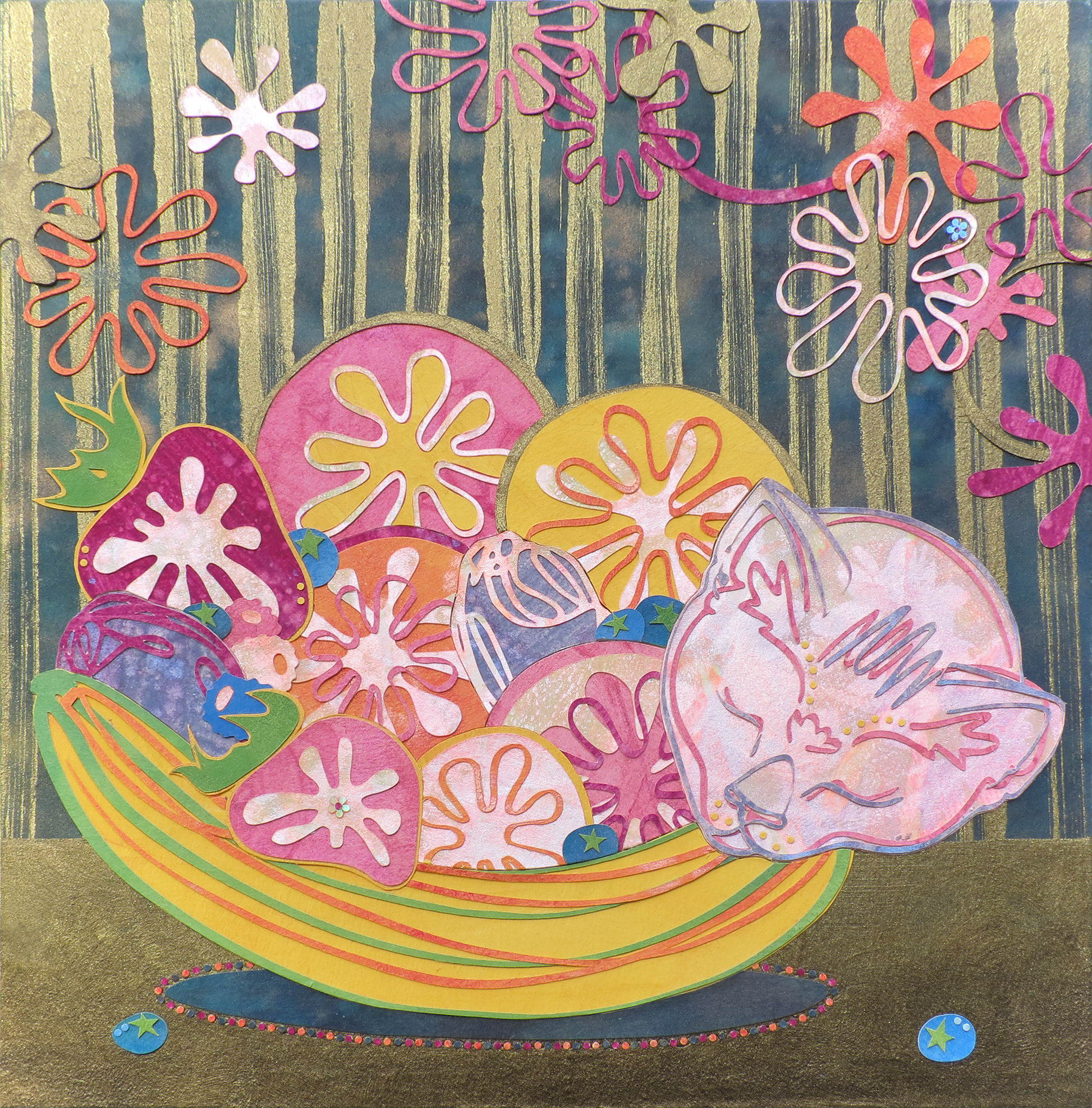 Fruit Cat Framed Print - Cat Art - Collage - Cut Paper Collage